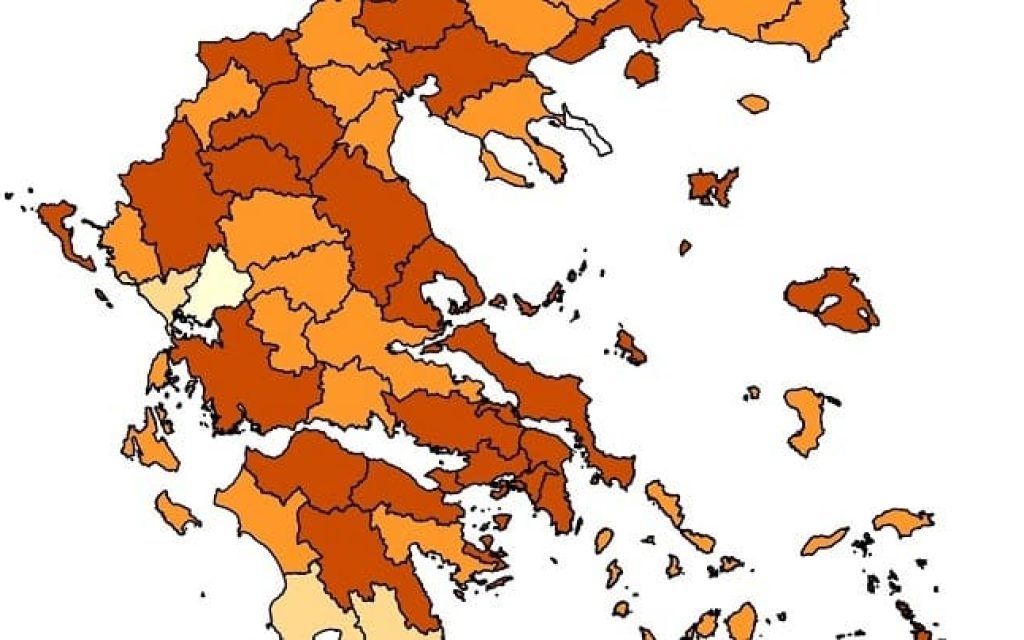 Τέσσερα χρώματα, τέσσερις διαφορετικές επιδημιολογικές εικόνες… Έτσι απεικονίζεται η Ήπειρος στον χάρτη γεωγραφικής αποτύπωσης που συνοδεύει τις εκθέσεις του ΕΟΔΥ.
