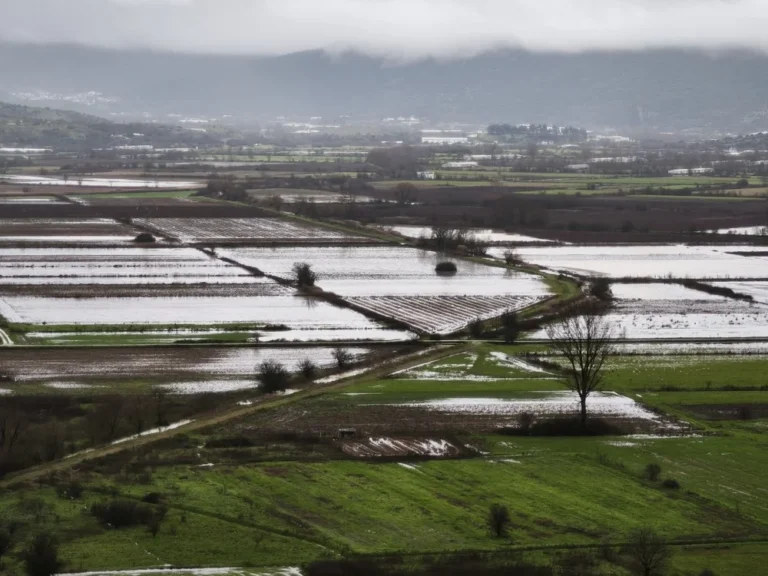 Με λίμνη μοιάζει ο κάμπος από το πρωί χωρίς όμως αυτό το διάστημα να υπάρχουν προβλήματα και ζημιές καθώς δεν έχει ξεκινήσει η καλλιεργητική περίοδος.