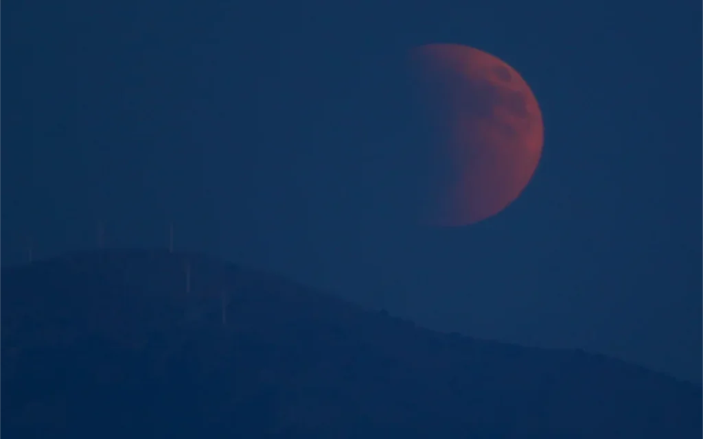 Στην Ελλάδα η ολική έκλειψη ξεκίνησε στις οκτώμισι το βράδυ, με το φεγγάρι να αποκτά κόκκινη απόχρωση.