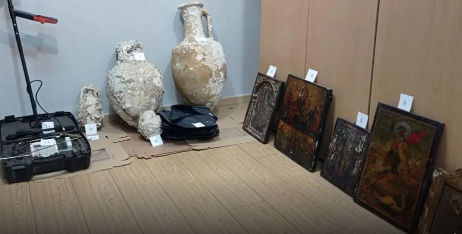 Ειδικότερα, στο πλαίσιο διερεύνησης πληροφοριών αναφορικά με γυναίκα που κατέχει παράνομα αρχαιότητες τις οποίες σκοπεύει να πουλήσει, συγκροτήθηκε ειδικό κλιμάκιο της υπηρεσίας και με συνδρομή δικαστικού λειτουργού εντοπίστηκε η 59χρονη και συνελήφθη, καθώς στην οικία της βρέθηκαν αρχαία αντικείμενα και εικόνες.