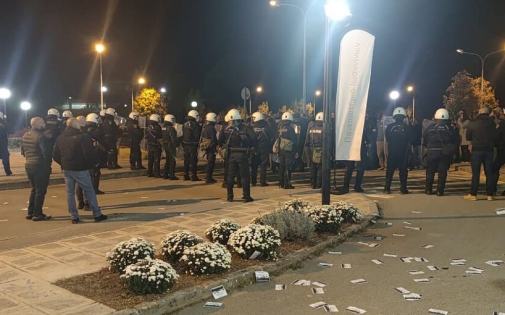 Η είσοδος των ΜΑΤ κι άλλων αστυνομικών δυνάμεων στο χώρο της Πανεπιστημιούπολης συνόδευσε την πανηγυρική εκδήλωση του Πανεπιστημίου Ιωαννίνων για τα εξήντα χρόνια από την ίδρυσή του.