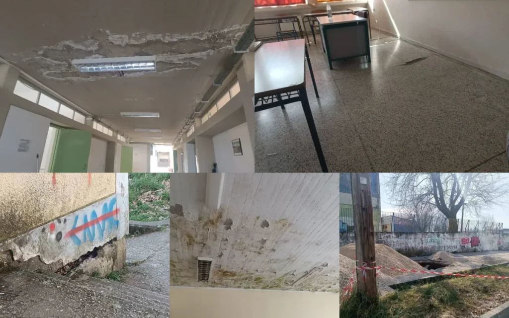 Μετά το σάρωθρο που «κατάπιε» ο δρόμος, πέφτουν τμήματα από την οροφή στο 8ο Λύκειο Ιωαννίνων