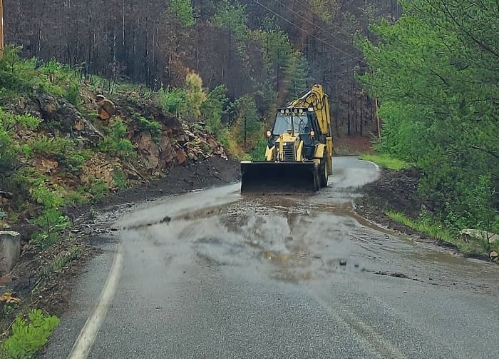 Για την απομάκρυνση φερτών υλικών και την αποκατάσταση των ζημιών δουλεύουν δύο μηχανήματα της Πολιτικής Προστασίας της Περιφέρειας Ηπείρου.