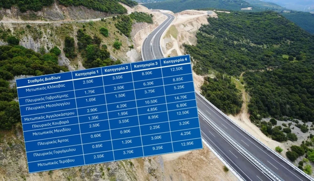 Συγκεκριμένα, για την Ιόνια Οδό η συνολική χρέωση για ένα επιβατικό Ι.Χ. θα αυξηθεί από 14,35 € το 2025 σε 15 € το 2026.