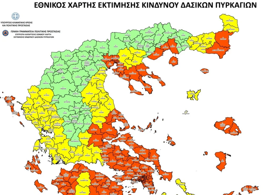 -Συχνότητας υψηλού κινδύνου στον Ημερήσιο Χάρτη Πρόβλεψης Κινδύνου Πυρκαγιάς της ΓΓ Πολιτικής Προστασίας