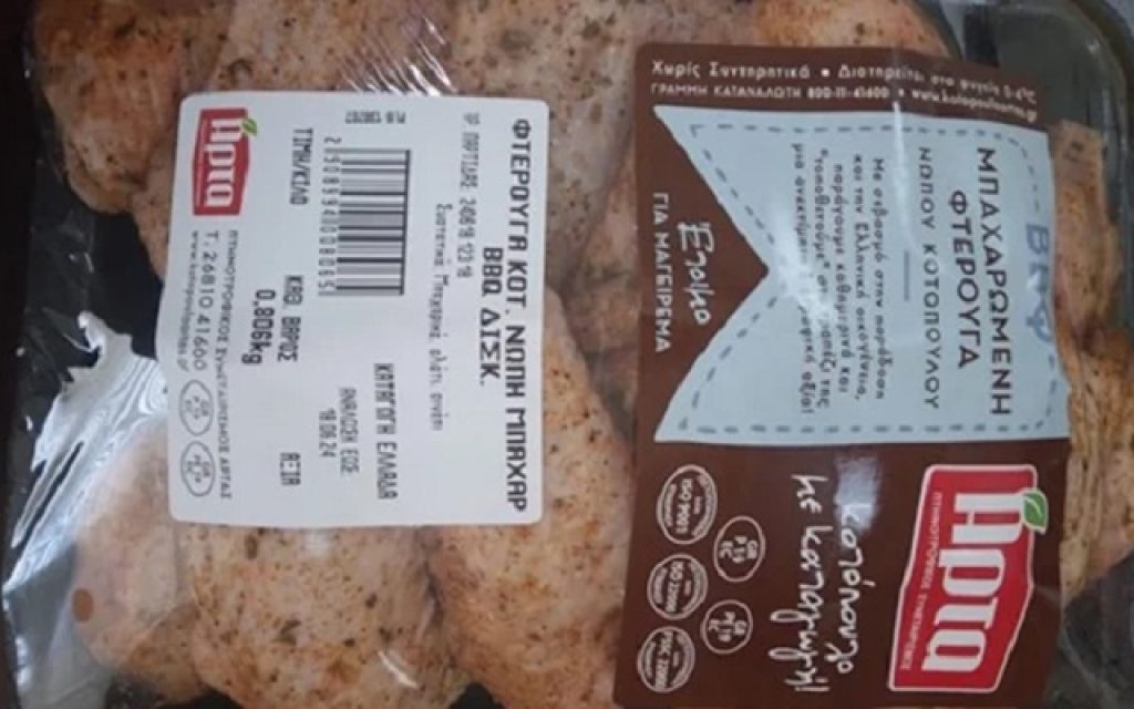 “ΜΠΑΧΑΡΩΜΕΝΗ ΦΤΕΡΟΥΓΑ ΝΩΠΟΥ ΚΟΤΟΠΟΥΛΟΥ ΑΡΤΑ” με αριθμό Lot 240618.12318 και ημερομηνία λήξης 18/06/2024, το οποίο παράγεται και συσκευάζεται στην Ελλάδα από την εταιρεία ΑΓΡΟΤΙΚΟΣ ΠΤΗΝΟΤΡΟΦΙΚΟΣ ΣΥΝΕΤΑΙΡΙΣΜΟΣ ΑΡΤΑΣ.