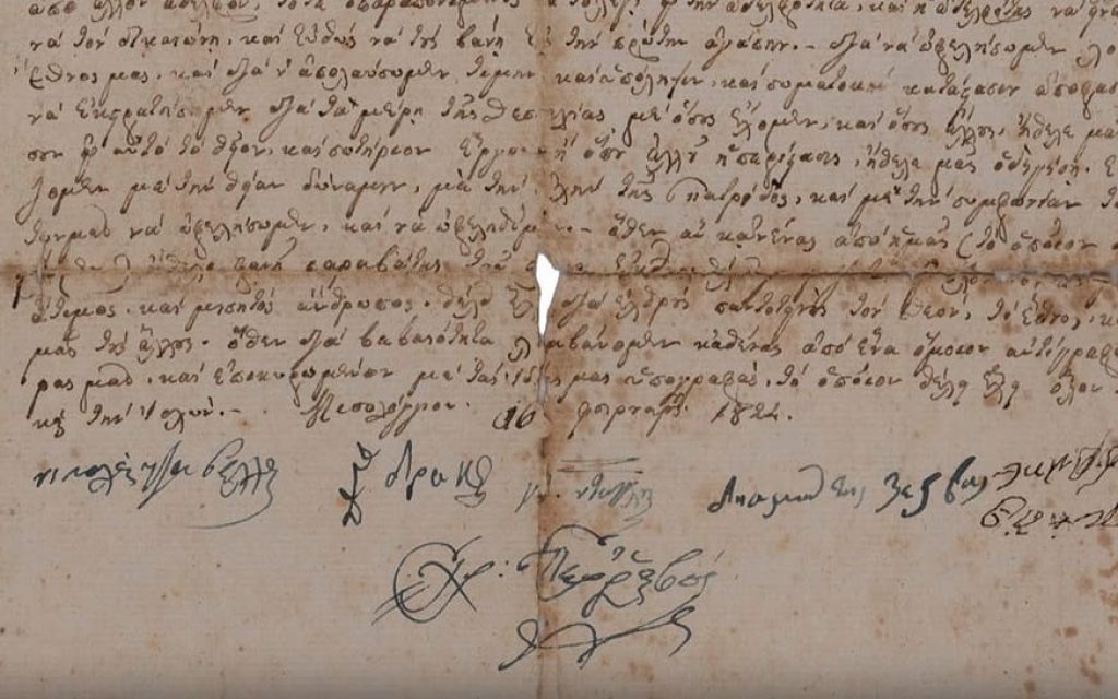 Το έγγραφο φέρει τις υπογραφές των Σουλιωτών Νικόλαου Τζαβέλλα, Γεωργίου Δράκου, Γιώτη Νταγλή, Διαμάντη Ζέρβα, Λάμπρου Βέικου και Χριστόφορου Περραιβού.
