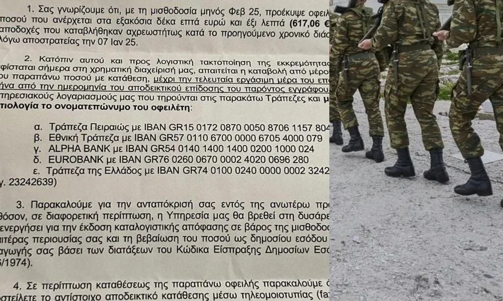Ο στρατός έκανε λάθος στον υπολογισμό των χρημάτων που του κατέβαλε και με καθυστέρηση το ανακάλυψε και ζητά πίσω το ποσό!