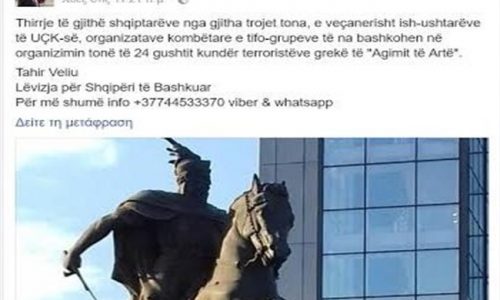 Ο Ταχίρ Βέλιου, ο οποίος επιδίδεται σε σειρά προκλήσεων σε βάρος της Ελλάδας καλεί αυτή την φορά τους βετεράνους του UCK, του Απελευθερωτικού Στρατού Κοσυφοπεδίου, να βρίσκονται σε ετοιμότητα.
