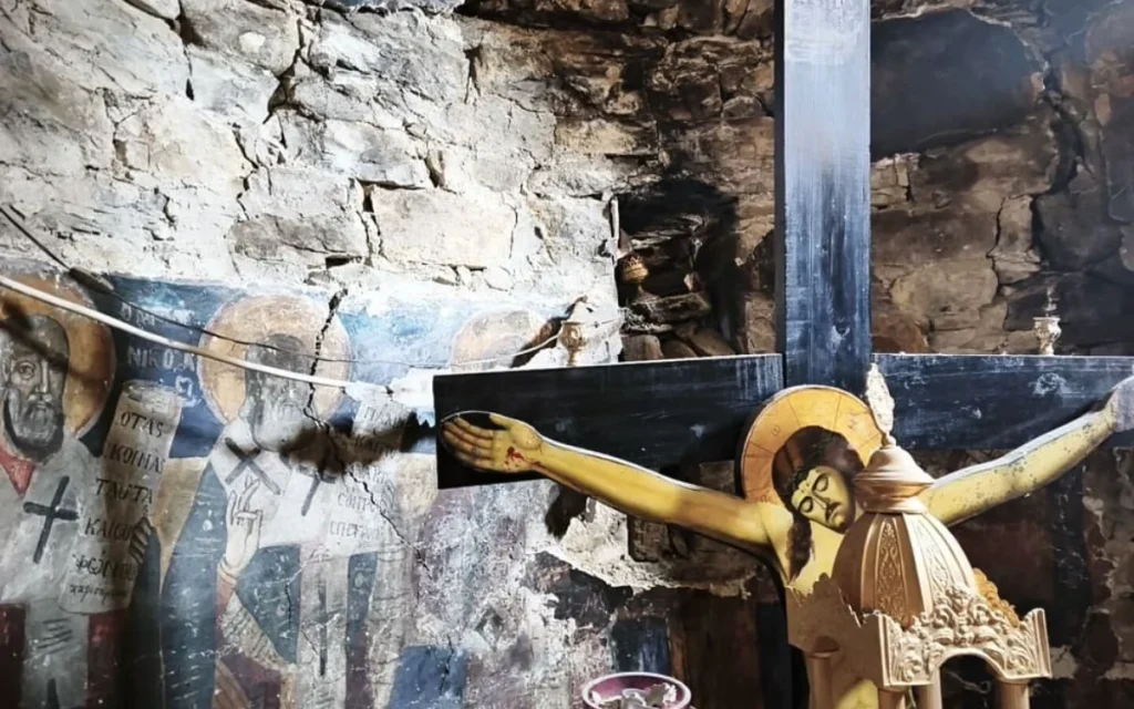 Οι τοιχογραφίες που κοσμούσαν τους ναούς, εκεί όπου στήνονταν τα μεγάλα πανηγύρια του καλοκαιριού, έχουν «σχιστεί» στα δύο.