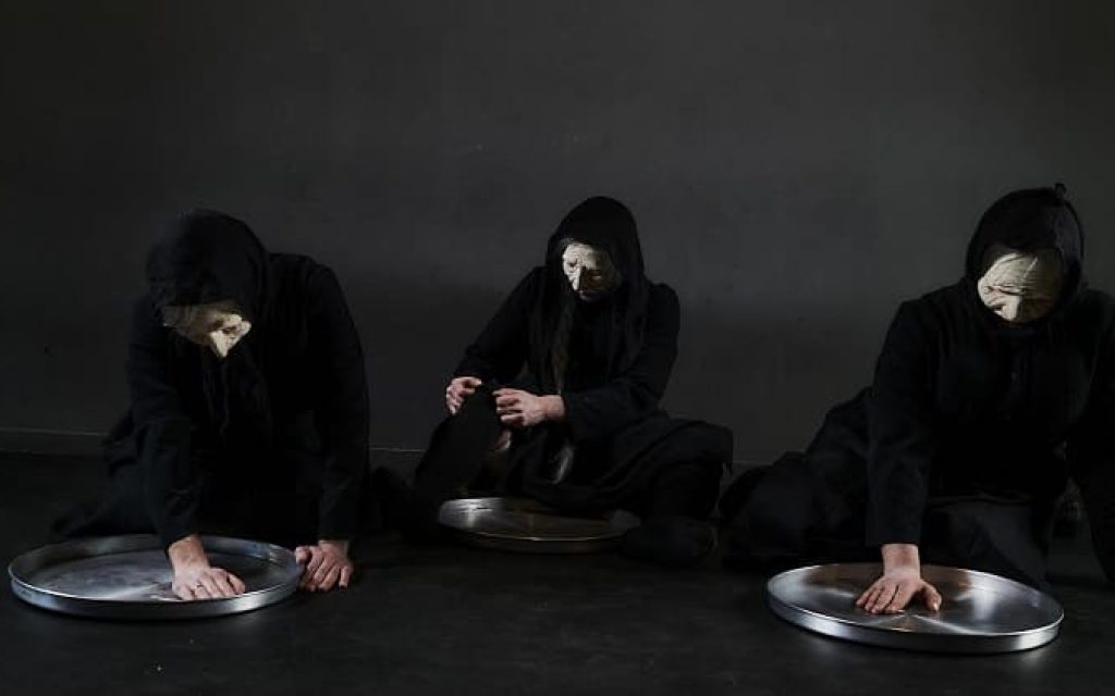 Αυτές οι «Γυναίκες της Γης» που έμεναν αόρατες χρόνια ακόμα και για τους ερευνητές – αφού δεν θεωρούσαν άξιο καταγραφής τον λόγο μιας γυναίκας για την ιστορία ενός τόπου- προσεγγίζονται σκηνικά από τρία αρσενικά νεαρά σώματα, επιχειρώντας να φέρουν στη σκηνή το προσωπικό και συλλογικό αφήγημα του οικείου γηρασμένου θηλυκού σώματος. Με εκφραστικά εργαλεία τις πρώτες ύλες της τελετουργικής διαδικασίας, τη μεταμφίεση, τη μάσκα και τον συντονισμό του λόγου και του σώματος, οι τρεις ηθοποιοί επιδίδονται σε ένα καταιγιστικό storytelling που ταξιδεύει από τις Μεταμορφώσεις του Οβίδιου και τα Φαρσάλια του Λουκανού μέχρι τη σύγχρονη ελληνική λογοτεχνία του Θωμά Ψύρρα, από παλιότερες αφηγήσεις, συνταγές και ιατροσοφικούς κώδικες του 19ου αιώνα, μέχρι σύγχρονες συνεντεύξεις που έγιναν κατά τη διάρκεια των παραστάσεων στη Θεσσαλία.