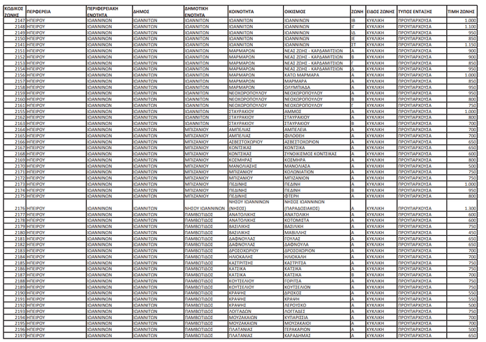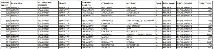 Αναλυτικά οι τιμές στο Δήμο Ιωαννιτών