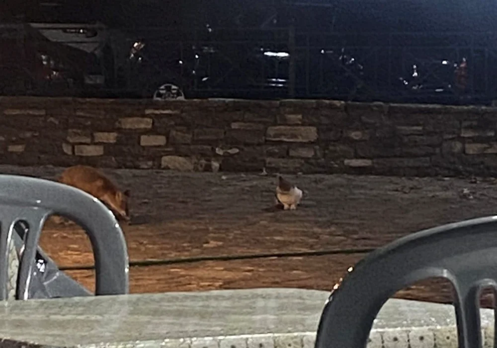 Στην προκειμένη περίπτωση όμως η αλεπού βρέθηκε αντιμέτωπη με… γάτα!! Οι κάτοικοι παρακολουθούσαν τα δύο ζώα να κοιτάζονται και ήταν πεπεισμένοι ότι η αλεπού θα επιτεθεί στη γάτα..