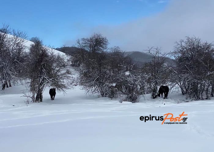 Εικόνες που χαρίζει μόνο η φύση.. Εικόνες πανέμορφες στην περιοχή του Μετσόβου. Πρωταγωνιστές τα ημιάγρια άλογα στο λευκό τοπίο..