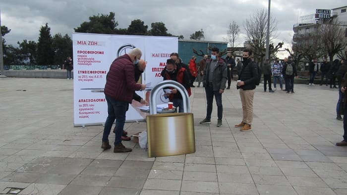 Στην κεντρική πλατεία της πόλης προσήλθαν σε μία συμβολική κινητοποίηση –πραγματοποιούνται ανάλογες σε ολόκληρη τη χώρα- κι άφησαν τα κλειδιά για να σταλούν στην κυβέρνηση.