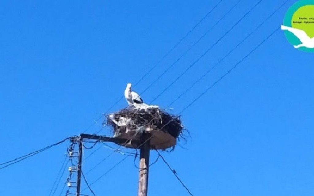 Ο πελαργός εντοπίστηκε από τους κατοίκους εδώ και λίγες μέρες.
