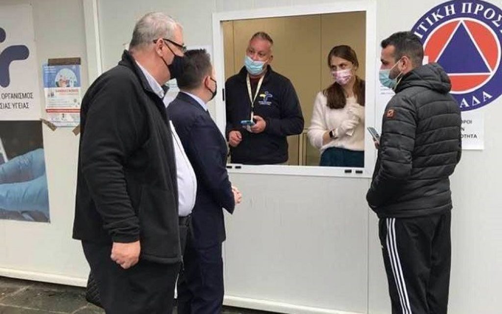 Στάση στην Κινητή Μονάδα του ΕΟΔΥ που βρίσκεται καθημερινά στο χώρο της κεντρικής πλατείας έκανε ο Αναπληρωτής Υπουργός Εσωτερικών Στέλιος Πέτσας.