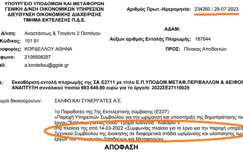 Μία ημέρα μετά την ακύρωση του διαγωνισμού για τον οδικό άξονα Ιωαννίνων- Κακαβιάς το Υπουργείο Υποδομών πλήρωνε περίπου εφτακόσιες χιλιάδες ευρώ για την παροχή υπηρεσιών συμβούλου για την ωρίμανση και υποστήριξη της δημοπράτησης του έργου!!!