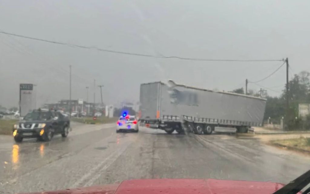 Ένα ΙΧ έκανε προσπέραση και στην συνέχεια φρέναρε απότομα. Ο οδηγός της νταλίκας αναγκάστηκε να φρενάρει με αποτέλεσμα να εκτραπεί στο αντίθετο ρεύμα.
