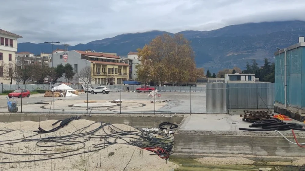 Μία δεύτερη μεταλλική περίφραξη μέσα από την υφιστάμενη τοποθετείται στην κεντρική πλατεία των Ιωαννίνων. Φαίνεται ότι με τον τρόπο αυτό διαχωρίζεται ένα τμήμα της, στο οποίο έχει ολοκληρωθεί η κυβόστρωση, από τον υπόλοιπο χώρο ο οποίος παραμένει ένα μεγάλο εργοτάξιο.