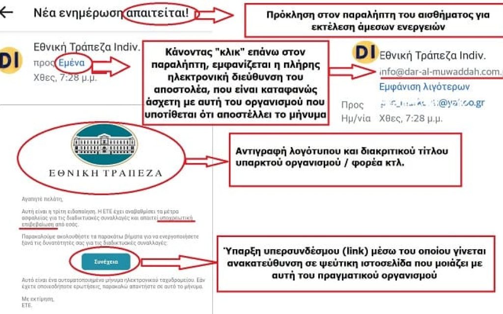Όπως σημειώνει μοιάζουν πολύ με τα μηνύματα που στέλνουν διάφοροι οργανισμοί (τράπεζες, επιχειρήσεις, υπηρεσίες κτλ)