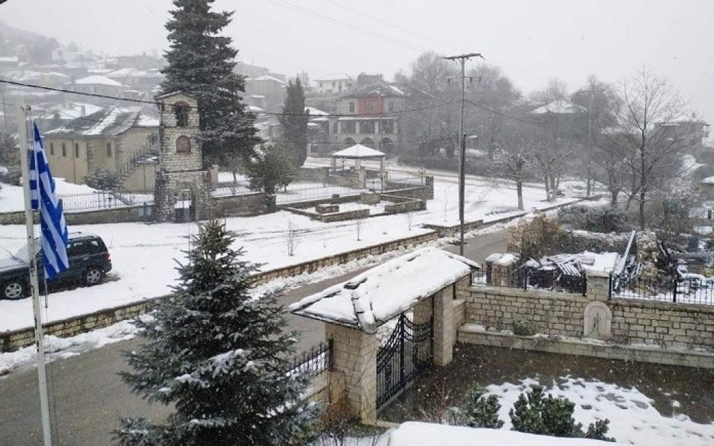 Πυκνή χιονόπτωση εκδηλώνεται από νωρίς το μεσημέρι στα χωριά του Ζαγορίου και σε άλλες ορεινές περιοχές του Νομού Ιωαννίνων.