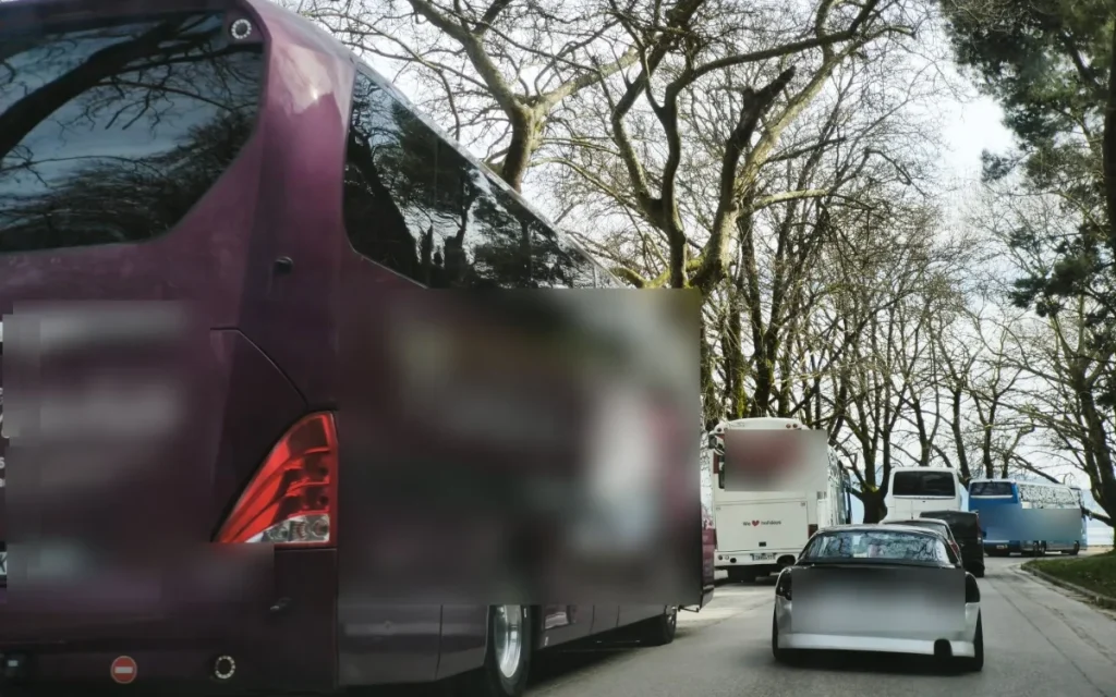 Η κορύφωση της περιόδου των σχολικών εκδρομών έχει φέρει στην πόλη δεκάδες λεωφορεία καθημερινά, τα οποία, ελλείψει εναλλακτικών λύσεων, καταλαμβάνουν κάθε διαθέσιμο σημείο κατά μήκος της λίμνης.