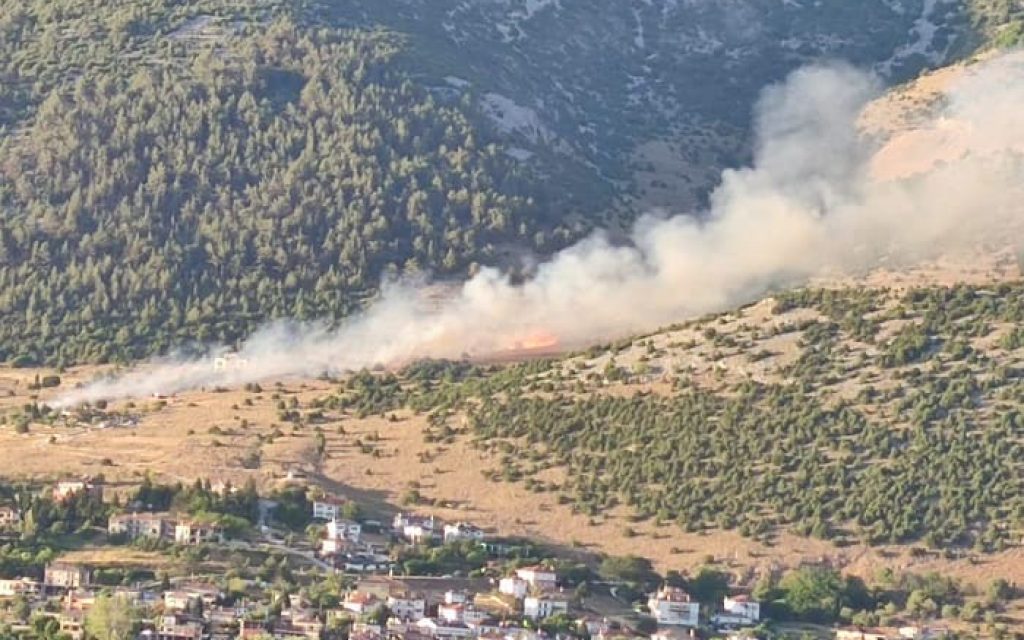 Σε εξέλιξη βρίσκεται μεγάλη φωτιά που ξέσπασε λίγο πριν τις οκτώ κοντά στην Αμφιθέα και με μέτωπο προς το δάσος του Μιτσικελίου.