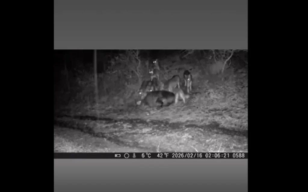 Η παρουσία των λύκων καταγράφηκε και από κάμερα ασφαλείας, με το σχετικό βίντεο να δείχνει τα ζώα να κινούνται κοντά σε κατοικίες και να παρατηρούν τον χώρο γύρω τους, επιβεβαιώνοντας τη συχνή προσέγγισή τους στο χωριό.