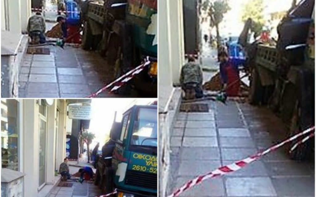 Σύμφωνα με τις μαρτυρίες των κατοίκων, πρόκειται για συνεργείο του ΟΤΕ που ξεκίνησε να σκάβει τα πεζοδρόμια χωρίς να γνωρίζει καν σε ποιο σημείο είναι τα καλώδια.