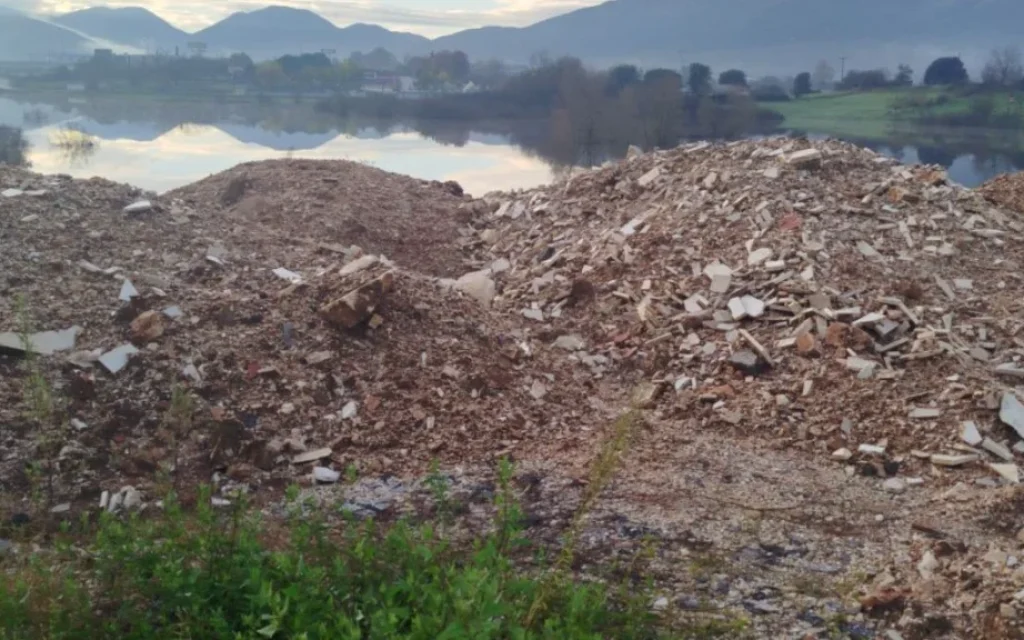 Σωροί από μπάζα και αδρανή δίπλα στη λίμνη Βρέλλη..