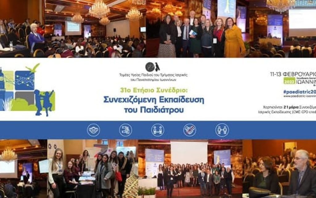 Το 31o Ετήσιο Πανελλήνιο Συνέδριο για την Συνεχιζόμενη Ενημέρωση του Παιδιάτρου διοργανώνει ο Τομέας Υγείας του Παιδιού του Τμήματος Ιατρικής της Σχολής Επιστημών Υγείας του Πανεπιστημίου Ιωαννίνων, σε συνεργασία με το Σωματείο Αρωγοί Πρόληψης και Θεραπείας Παιδικών Νοσημάτων, στις 11-13 Φεβρουαρίου 2022 στο ξενοδοχείο «GrandSerai» στα Ιωάννινα.