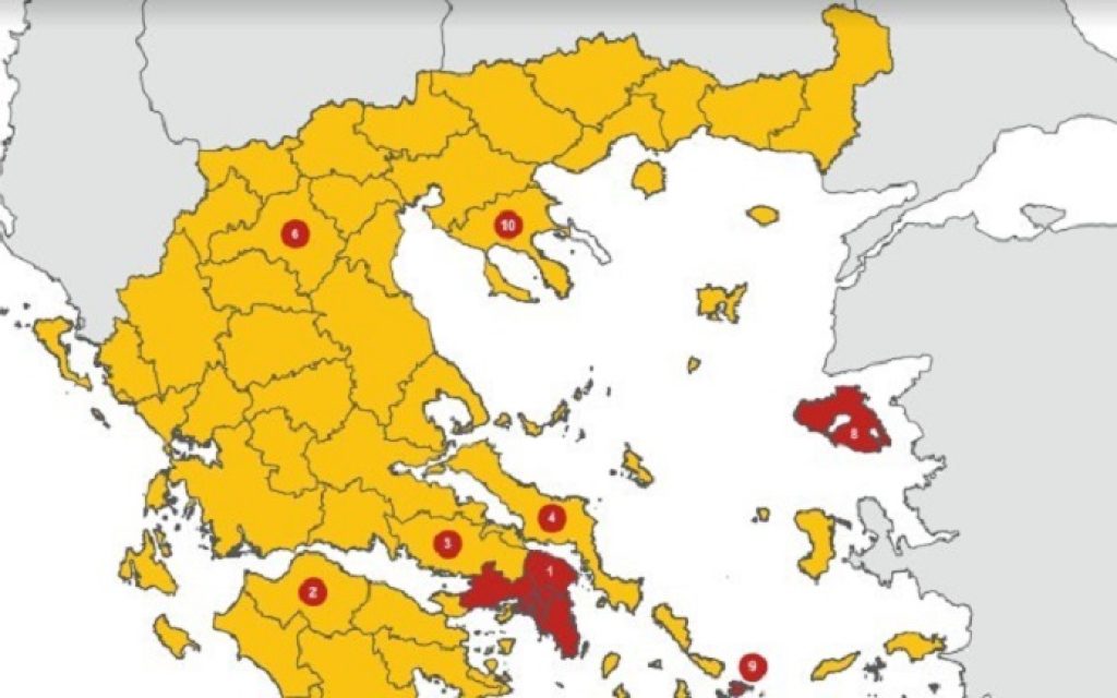 Στο κόκκινο πάντως πέρασαν άλλες περιοχές της χώρας όπου εκεί τα μέτρα αυστηροποιούνται ακόμη περισσότερο.