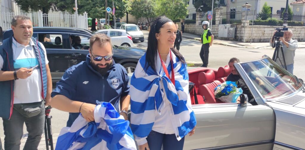 Η κορυφαία πρωταθλήτρια και ο προπονητής της Βασίλης Ζήκος έφτασαν στο αεροδρόμιο Ιωαννίνων όπου έτυχαν θερμής υποδοχής.