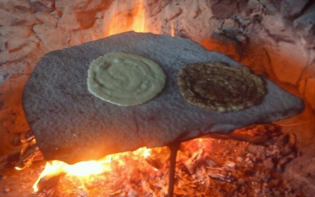 Ανάβουμε φωτιά και πάνω στην πυροστιά τοποθετούμε μια καθαρή μαυρόπλακα.