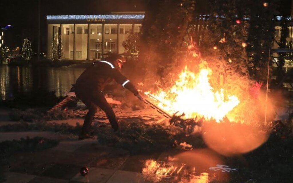 Το συγκεντρωμένο πλήθος άρχισε να πετά πέτρες, με αποτέλεσμα να προκληθούν ζημιές στο κτίριο. Φωτιά ξέσπασε και στο χριστουγεννιάτικο δέντρο που ήταν τοποθετημένο έξω από το υπουργείο.