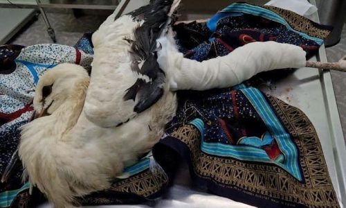 Το προσωπικό εντόπισε το πτηνό και το μετέφερε για τις πρώτες βοήθειες στον κτηνίατρο.