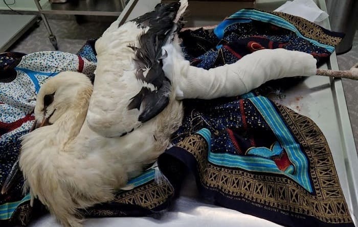 Το προσωπικό εντόπισε το πτηνό και το μετέφερε για τις πρώτες βοήθειες στον κτηνίατρο.