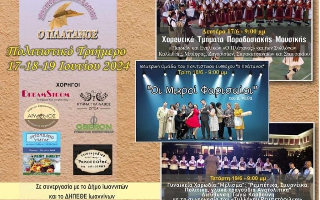 Τριήμερο με καλοκαιρινές εκδηλώσεις θα πραγματοποιήσει ο Πολιτιστικός Σύλλογος «Ο Πλάτανος» από 17 έως 19 Ιουνίου, στην πλατεία του «Πλατάνου».