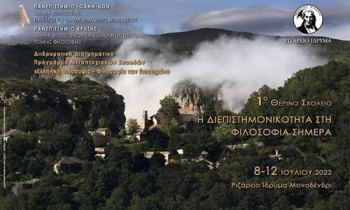 Το Δ.Δ.Π.Μ.Σ. «ΕΛΛΗΝΙΚΗ ΦΙΛΟΣΟΦΙΑ – ΦΙΛΟΣΟΦΙΑ ΤΩΝ ΕΠΙΣΤΗΜΩΝ» του Τμήματος Φιλοσοφίας της Φιλοσοφικής Σχολής του Πανεπιστημίου Ιωαννίνων διοργανώνει το 1ο Θερινό Σχολείο με θέμα: «Η Διεπιστημονικότητα στη Φιλοσοφία σήμερα».