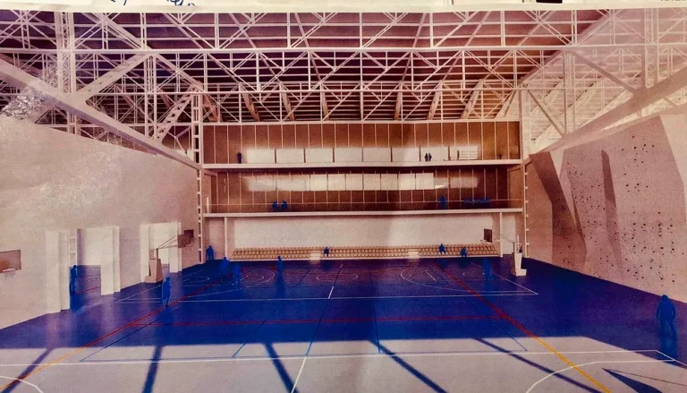 Πρόκειται για το περίφημο «κλειστό της ξιφασκίας» για το οποίο σχεδόν τρία χρόνια μετά την μεταφορά των υλικών από το Ελληνικό, γίνεται το πρώτο βήμα για την επανασυναρμολόγηση και κατασκευή του πολυκέντρου.