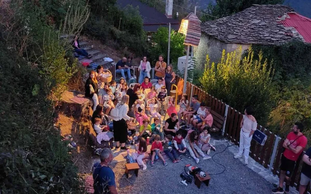 Οι ζωγραφιές των μικρών παιδιών στην συνέχεια εκτέθηκαν στην πλατεία που είχε αρχίσει να προετοιμάζεται για την προβολή της ταινίας «TheOldOak»του ΚενΛόουτς. Οι παραδοσιακές λιθόκτιστες πεζούλες γέμισαν όπως και ο εξώστης στο καφενείο. Παράλληλα με την προβολή της ταινίας του Φεστιβάλ κάτω από τον υπεραιωνόβιο πλάτανο στην παραδοσιακή πλατεία, λίγα μέτρα πιο δίπλα, στην παιδική χαράτου χωριού, πραγματοποιούνταν και πάλι προβολή παιδικής ταινίας για τους μικρούς μας φίλους.