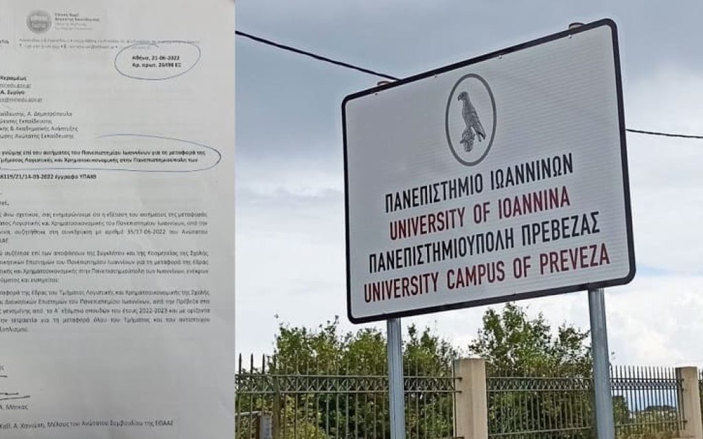 Το πολιτικό κόστος φαίνεται πως ήταν αυτό που πάγωσε –μέχρι στιγμής τουλάχιστον- την μεταφορά του Τμήματος Λογιστικής από την Πρέβεζα στα Ιωάννινα.