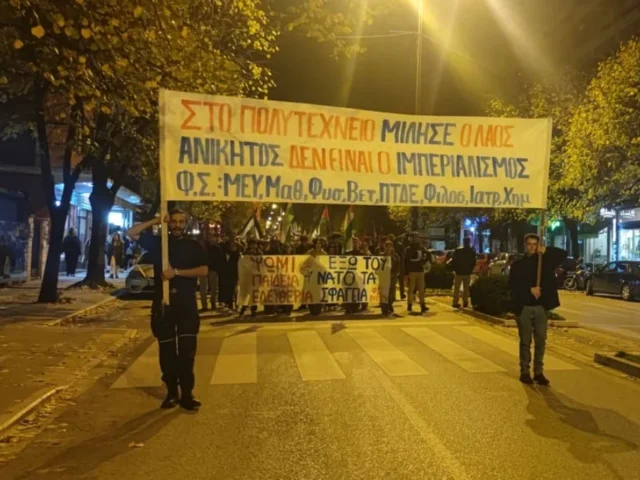 Από αργά το απόγευμα φοιτητές, μαθητές και εργαζόμενοι συγκεντρώθηκαν στην Δομπόλη και στην πλατεία Ηρώων Πολυτεχνείου.