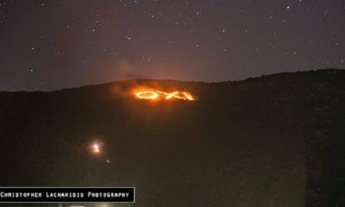 Στο βουνό που υψώνεται πάνω από το χωριό, πήρε τη θέση του, το πύρινο όχι που ανάβει από το 1966.