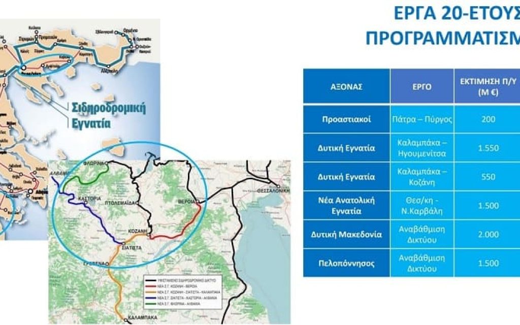 Στα έργα της Δυτικής Εγνατίας περιλαμβάνεται η γραμμή Καλαμπάκα Ηγουμενίτσα με εκτίμηση προϋπολογισμού 1,5 δις και με το χρηματοδοτικό πλαίσιο να είναι υπό διερεύνηση.