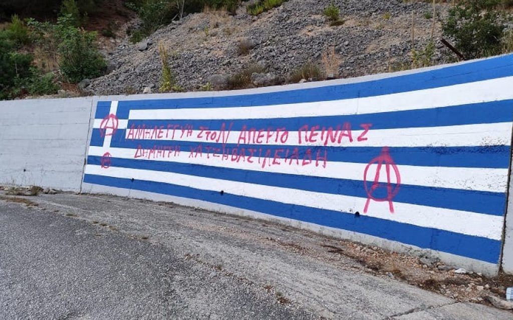 Ομάδα εθελοντών με την συνδρομή του Δήμου είχε φτιάξει γκράφιτι με την ελληνική σημαία στον δρόμο του Σουλίου.