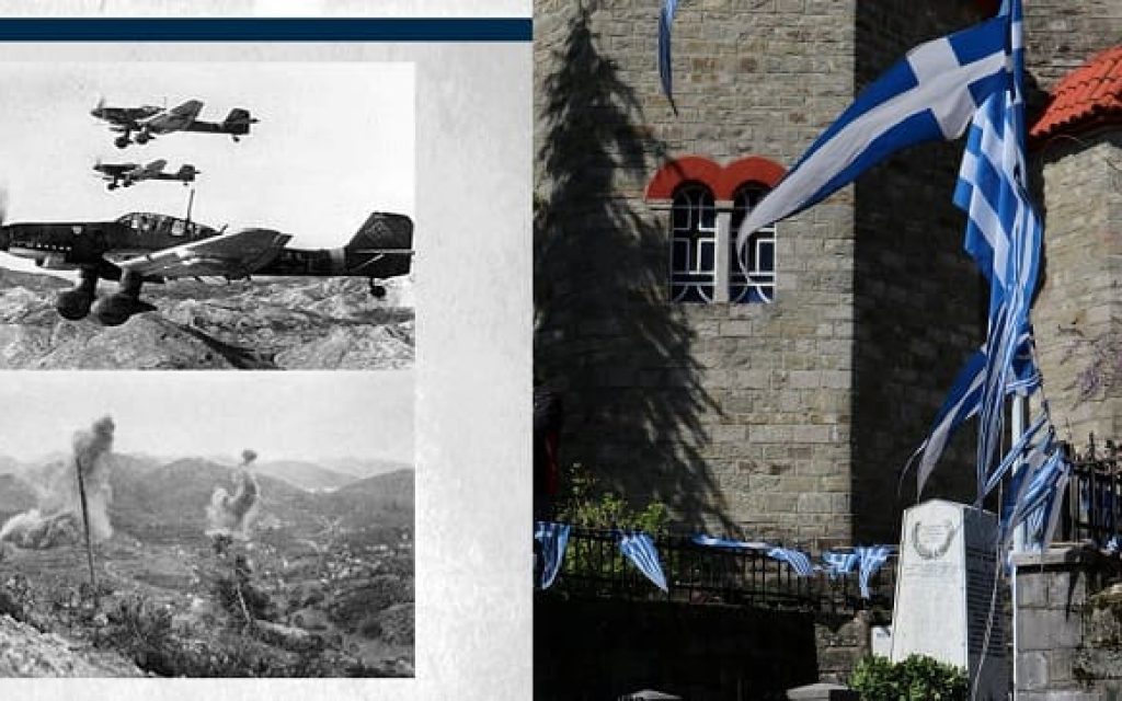 Αντίποινα για την αντιστασιακή δράση των κατοίκων του, κατά τη περίοδο της Γερμανικής Κατοχής. Τα γερμανικά αεροπλάνα έριξαν πάνω από 400 βόμβες.